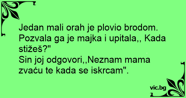 Sin joj odgovori,,Neznam mama zvaću te kada se iskrcam".