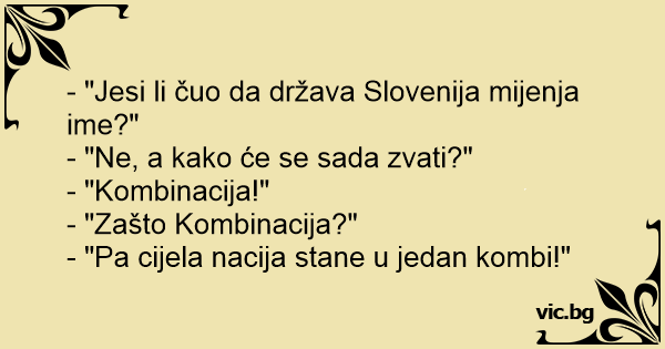 - "Jesi li čuo da država Slovenija mijenja ime?"