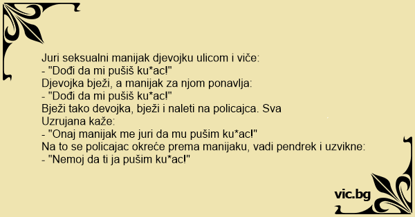 - "Onaj manijak me juri da mu pušim ku*ac!"