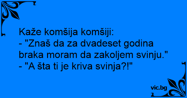 - "Znaš da za dvadeset godina braka moram da zakoljem svinju."