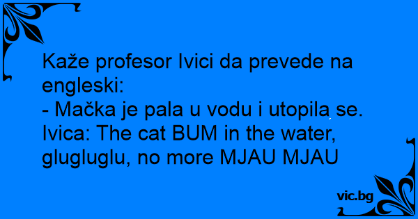 - Mačka je pala u vodu i utopila se. Ivica: The cat ВUМ in the water, glugluglu, no more MJAU MJAU