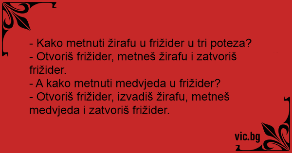- Otvoriš frižider, izvadiš žirafu, metneš medvjeda i zatvoriš frižider.