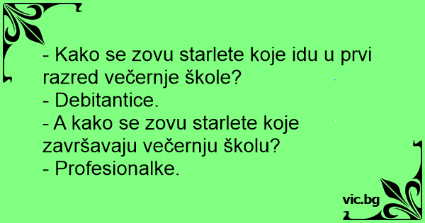 - Kako se zovu starlete koje idu u prvi razred večernje škole?