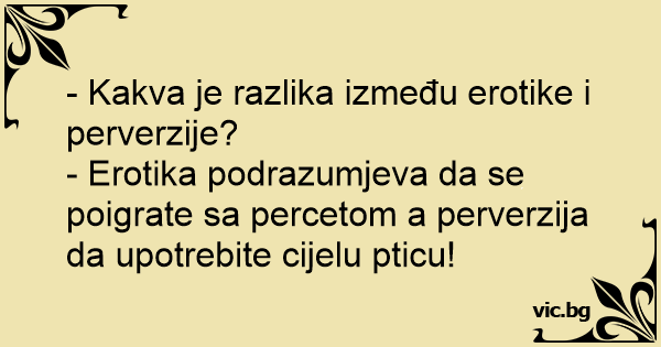 - Erotika podrazumjeva da se poigrate sa percetom a perverzija da upotrebite cijelu pticu!
