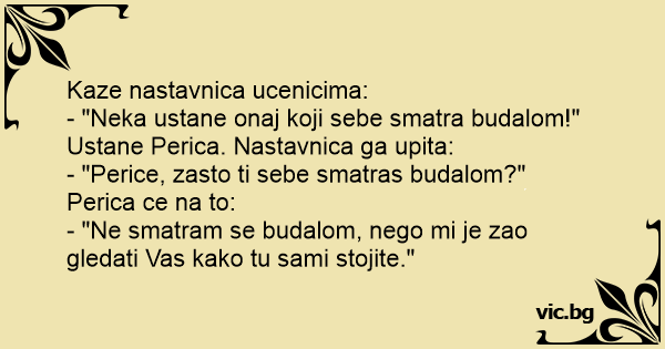 - "Perice, zasto ti sebe smatras budalom?"