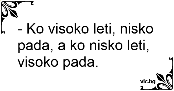 - Ko visoko leti, nisko pada, a ko nisko leti, visoko pada.