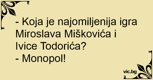 - Koja je najomiljenija igra Miroslava Miškovića i Ivice Todorića?