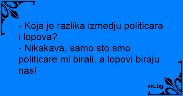 - Nikakava, samo sto smo politicare mi birali, a lopovi biraju nas!