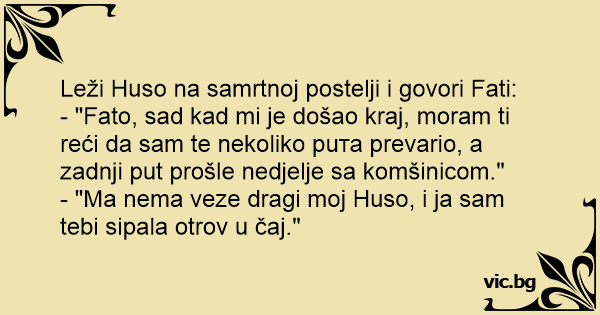 - "Ma nema veze dragi moj Huso, i ja sam tebi sipala otrov u čaj."