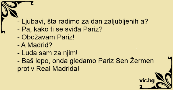 - Baš lepo, onda gledamo Pariz Sen Žermen protiv Real Madrida!
