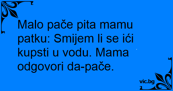 Malo pače pita mamu patku: Smijem li se ići kupsti u vodu. Mama odgovori da-pače.