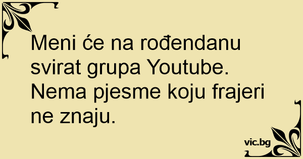Meni će na rođendanu svirat grupa Youtube.