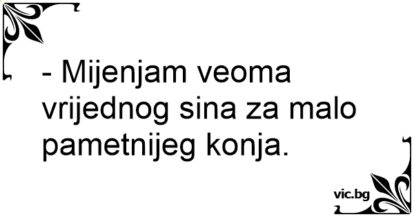- Mijenjam veoma vrijednog sina za malo pametnijeg konja.