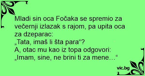 Mladi sin oca Fočaka se spremio za večernji izlazak s rajom, pa upita oca za dzeparac: