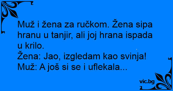 Muž i žena za ručkom. Žena sipa hranu u tanjir, ali joj hrana ispada u krilo.