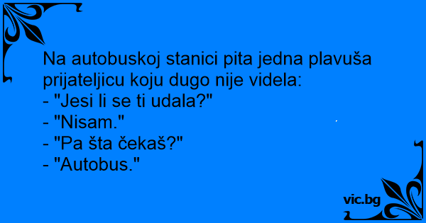 Na autobuskoj stanici pita jedna plavuša prijateljicu koju dugo nije videla: