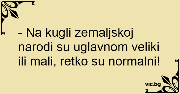 - Na kugli zemaljskoj narodi su uglavnom veliki ili mali, retko su normalni!