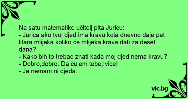 Na satu matematike učitelj pita Juricu: