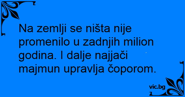 Na zemlji se ništa nije promenilo u zadnjih milion godina. I dalje najjači majmun upravlja čoporom.