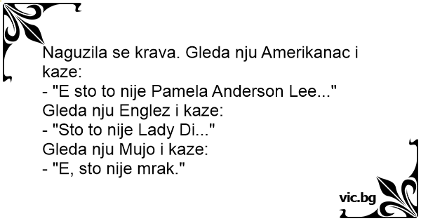 Naguzila se krava. Gleda nju Amerikanac i kaze: