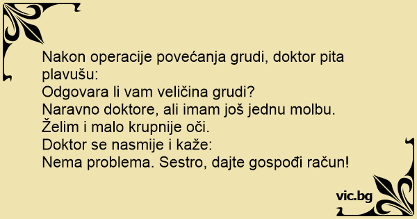 Nakon operacije povećanja grudi, doktor pita plavušu: