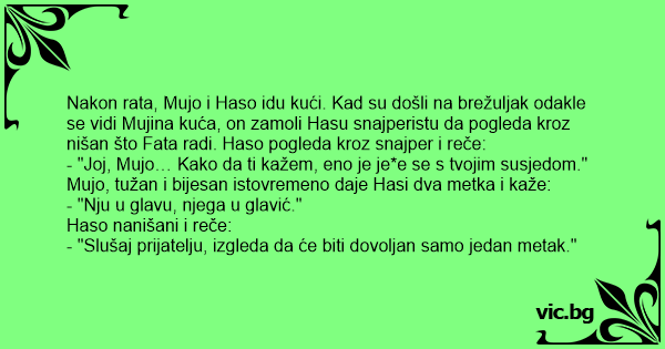 - "Joj, Mujo… Kako da ti kažem, eno je je*e se s tvojim susjedom."