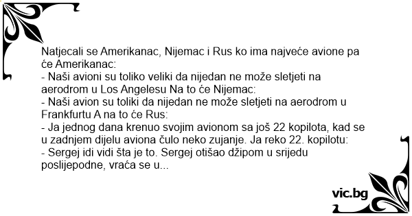 - Naši avion su toliki da nijedan ne može sletjeti na aerodrom u Frankfurtu A na to će Rus: