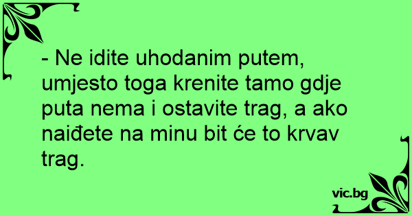 - Ne idite uhodanim putem, umjesto toga krenite tamo gdje рuта nema i ostavite trag, a ako naiđete na minu bit će to krvav trag.