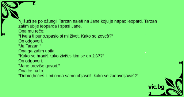 Slušajući Tarzana,Jane se napalila pa mu reče:
