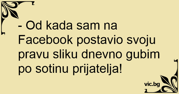 - Od kada sam na Facebook postavio svoju pravu sliku dnevno gubim po sotinu prijatelja!