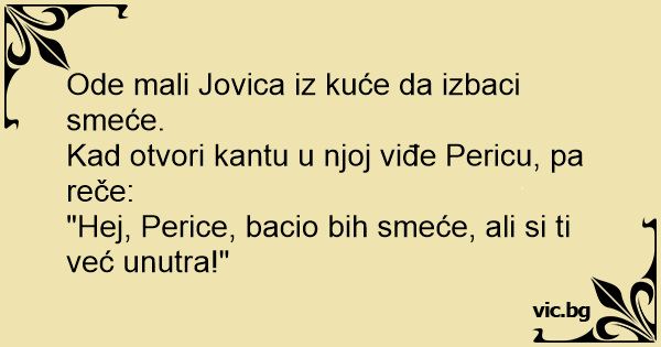 "Hej, Perice, bacio bih smeće, ali si ti već unutra!"