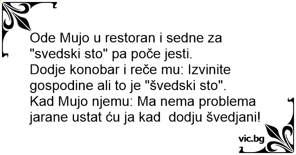 Ode Mujo u restoran i sedne za "svedski sto" pa poče jesti.
