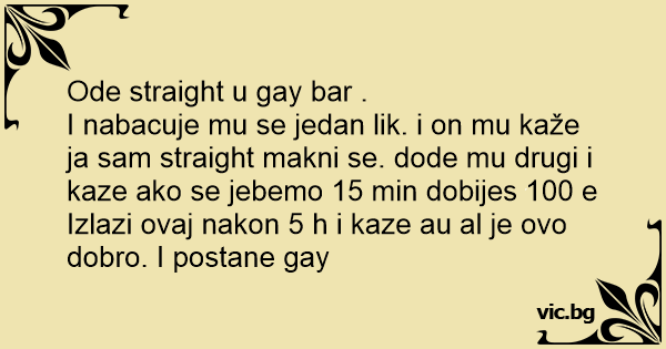 I nabacuje mu se jedan lik. i on mu kaže ja sam straight makni se. dode mu drugi i kaze ako se jebemo 15 min dobijes 100 e