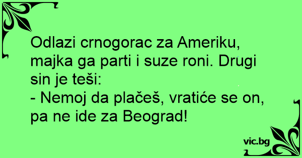 Odlazi crnogorac za Ameriku, majka ga parti i suze roni. Drugi sin je teši: