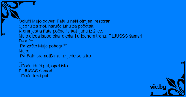 Odluči Mujo odvest Fatu u neki otmjeni restoran.