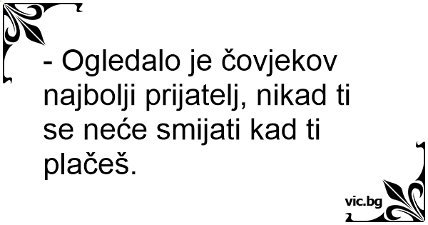 - Ogledalo je čovjekov najbolji prijatelj, nikad ti se neće smijati kad ti plačeš.