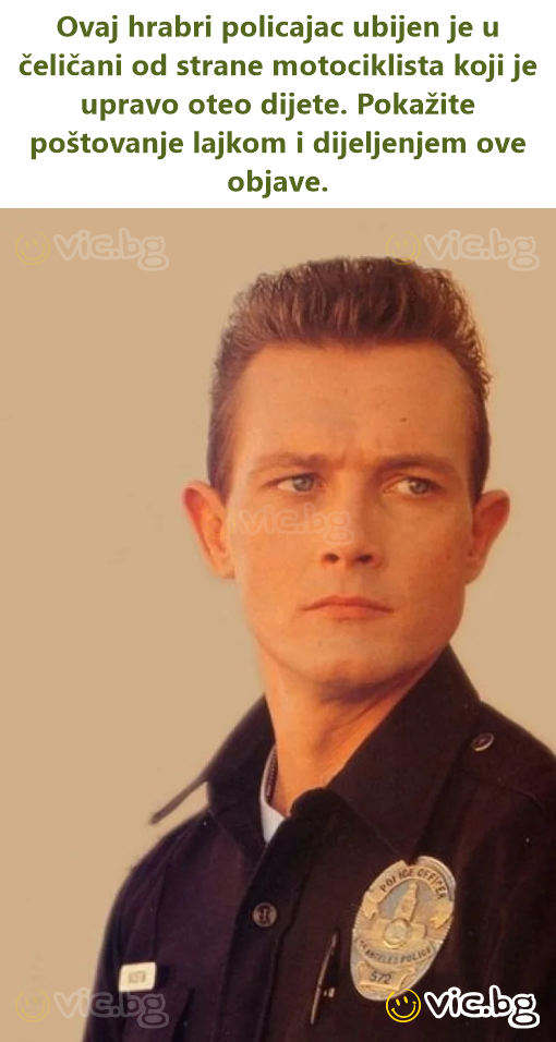 Tento statečný policista byl zabit v ocelárně motorkářem, který právě unesl dítě. Vyjádřete vděk lajkem a sdílením tohoto příspěvku.
