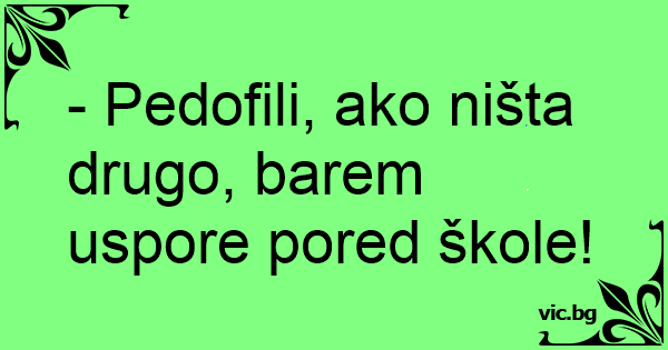 - Pedofili, ako ništa drugo, barem uspore pored škole!