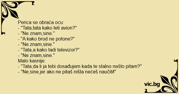 - "Tata,da li ja tebi dosađujem kada te stalno nešto pitam?"