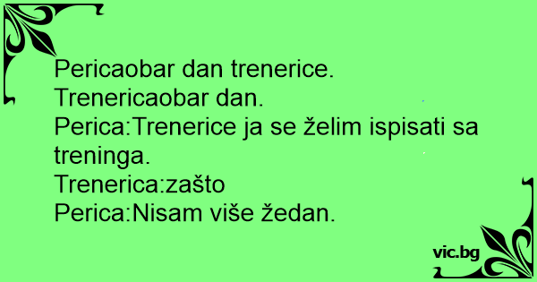 Perica:Trenerice ja se želim ispisati sa treninga.