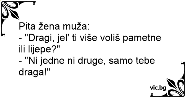 - "Dragi, jel' ti više voliš pametne ili lijepe?"