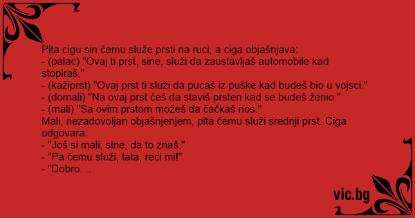 Pita cigu sin čemu služe prsti na ruci, a ciga objašnjava: