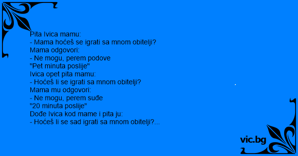 Pita Ivica mamu: - Mama...