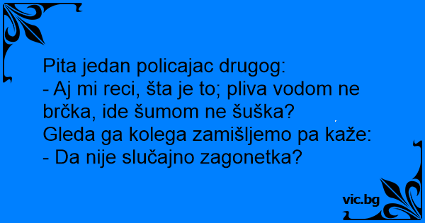 - Aj mi reci, šta je to; pliva vodom ne brčka, ide šumom ne šuška?