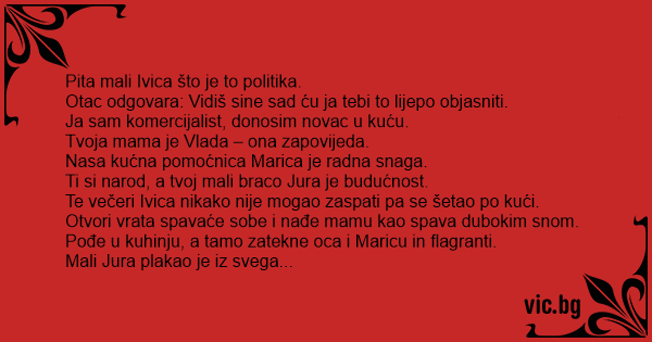 - Ako sam dobro shvatio – komercijalist iskorištava radnu snagu dok Vlada spava, za narod ga nije briga, a budućnost nam leži u govnima!!!!