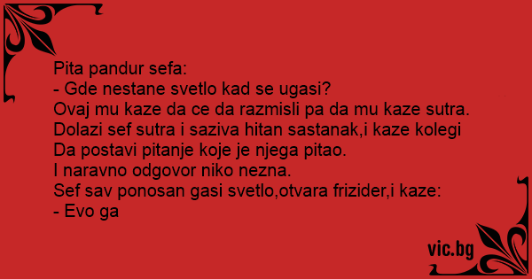 Dolazi sef sutra i saziva hitan sastanak,i kaze kolegi