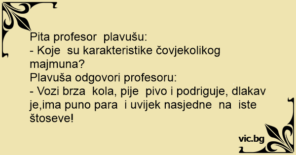 Pita profesor plavušu: -...