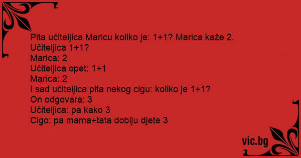 I sad učiteljica pita nekog cigu: koliko je 1+1?