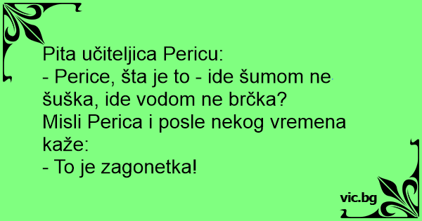- Perice, šta je to - ide šumom ne šuška, ide vodom ne brčka?