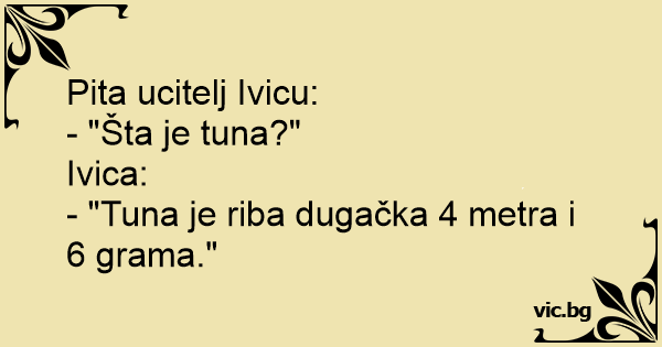 - "Tuna je riba dugačka 4 metra i 6 grama."
